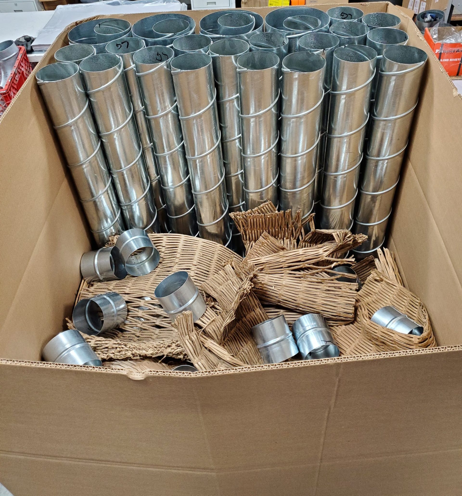 Spiral Pipe is easily shipped. Five foot lengths up to 16″ diameter can be shipped via UPS or FedEx Ground for fast delivery.