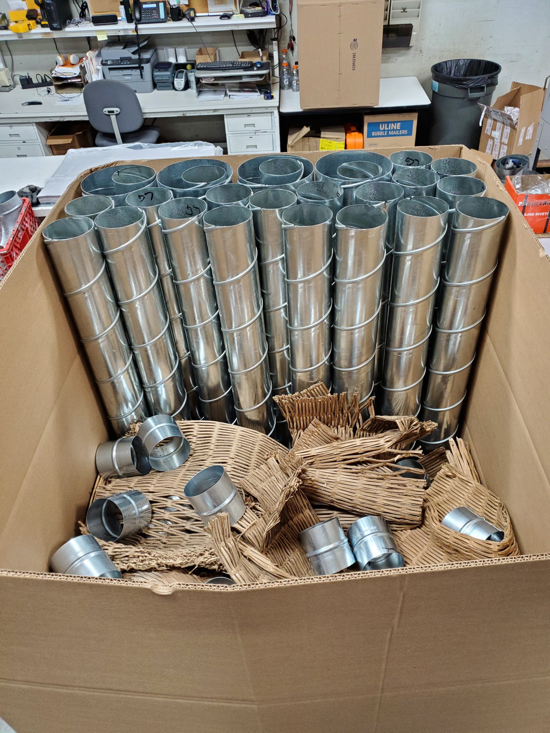 Spiral Pipe is easily shipped. Five-foot lengths up to 16″ diameter can be shipped via UPS or FedEx Ground for fast delivery. Five-foot lengths 18″ inch diameter and larger will be shipped by common carrier. Minimum required purchase amount of 40 linear feet. Please call for pricing.